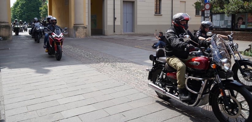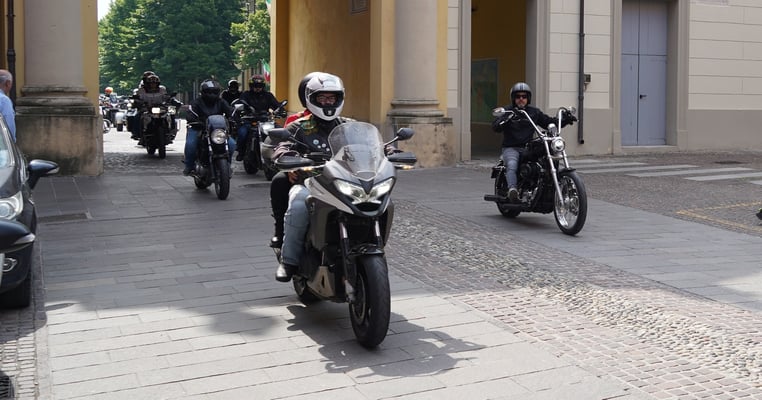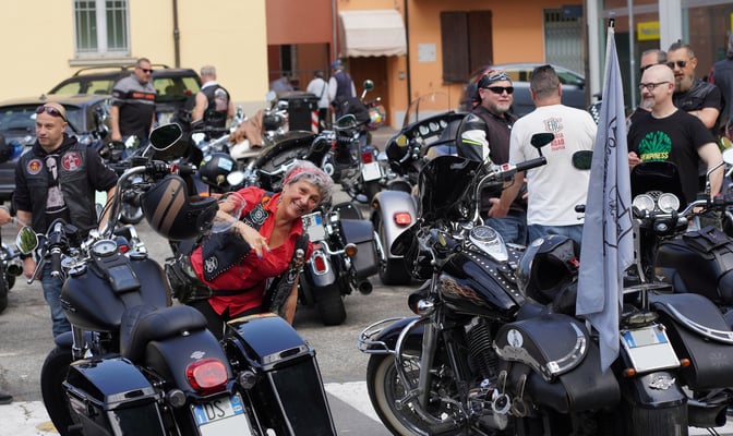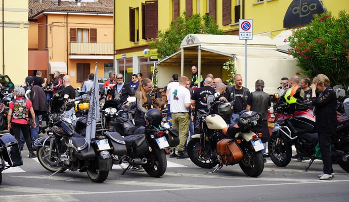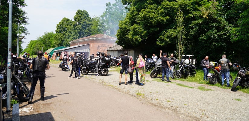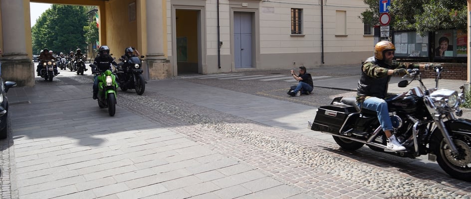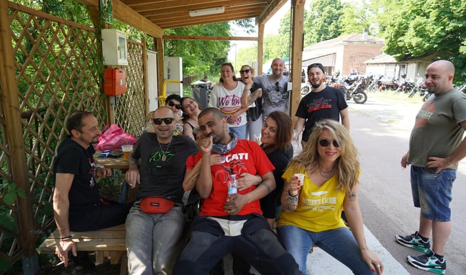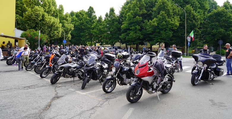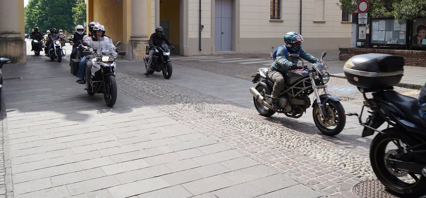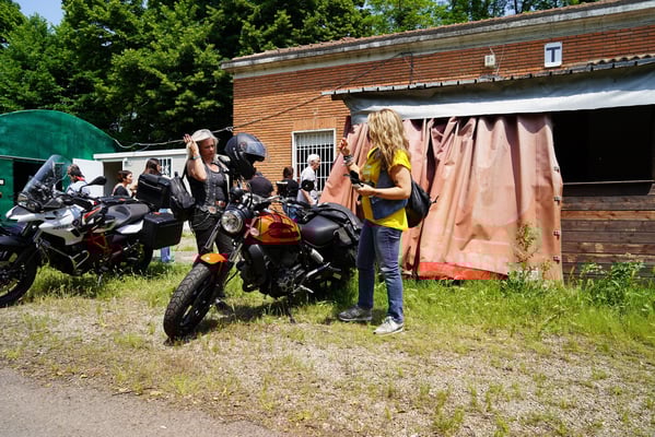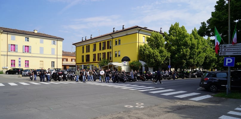 Quest'anno facciamo il Moto a balùs a maggio, in una splendida domenica di sole, per cercare di fare qualcosa 😉 dopo i disastri che ha provocato il maltempo. Il ritrovo è a Crevalcore, arrivano tanti amici, con custom, stradali, enduro, turistiche, trike. Una cinquantina di moto macinano un bel giretto nella bassa tra Bologna e Ferrara.