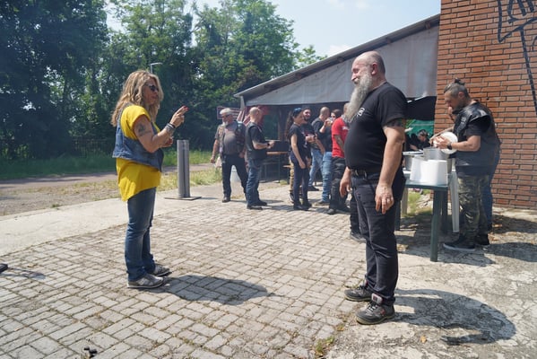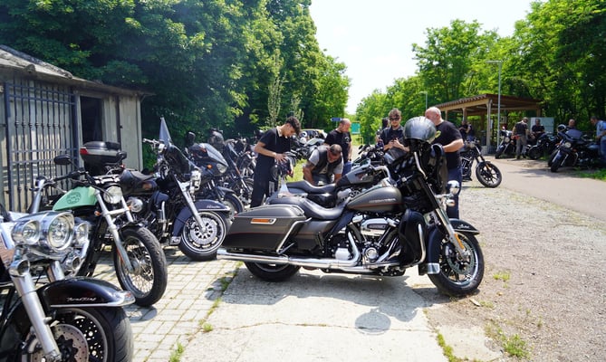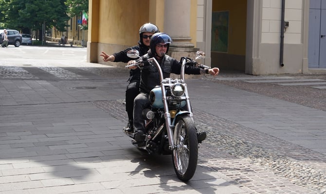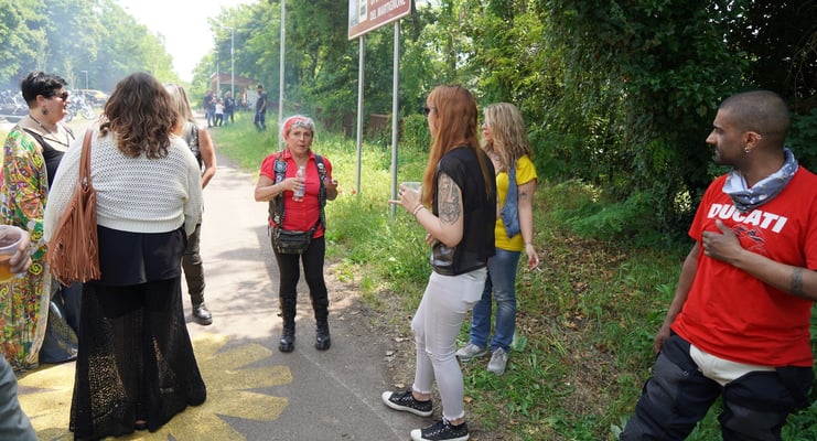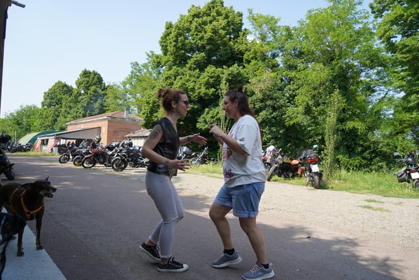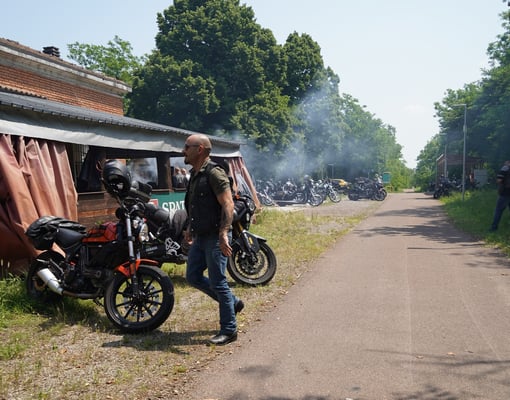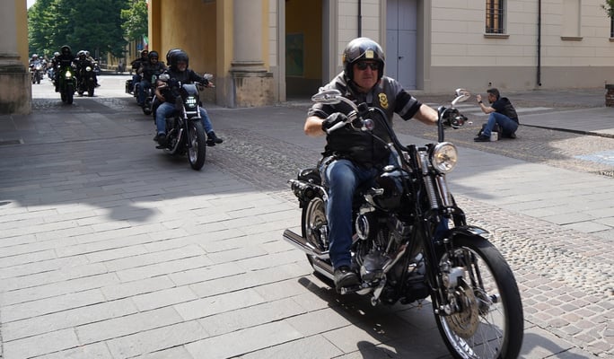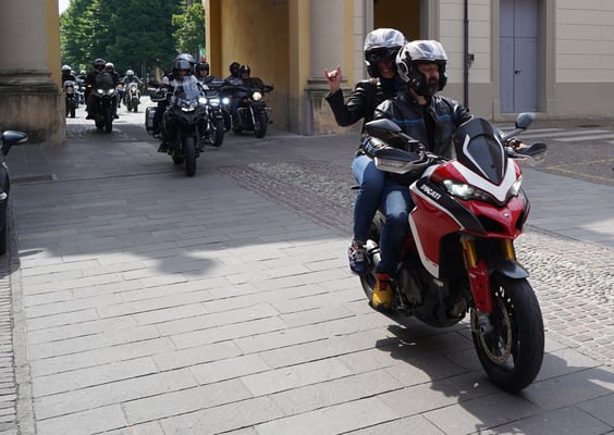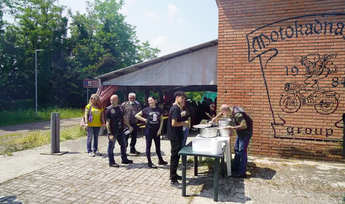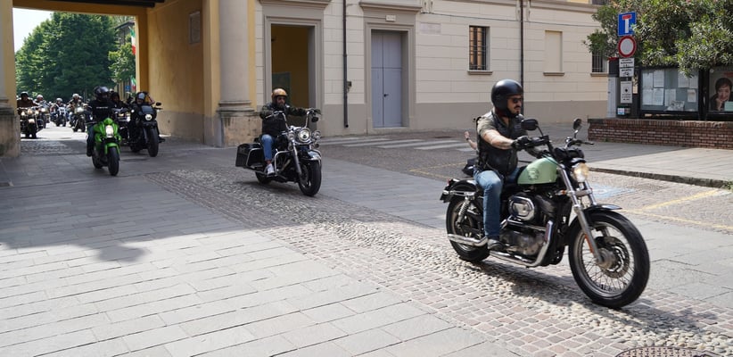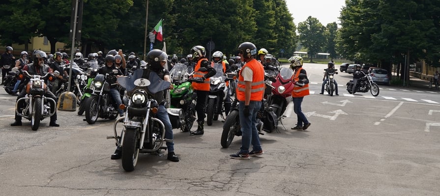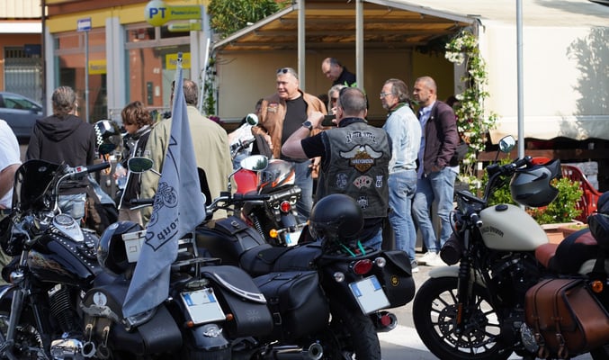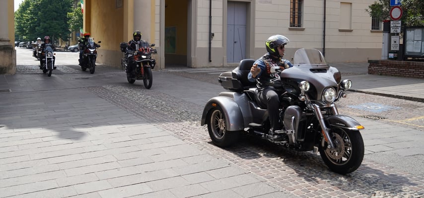 Quest'anno facciamo il Moto a balùs a maggio, in una splendida domenica di sole, per cercare di fare qualcosa 😉 dopo i disastri che ha provocato il maltempo. Il ritrovo è a Crevalcore, arrivano tanti amici, con custom, stradali, enduro, turistiche, trike. Una cinquantina di moto macinano un bel giretto nella bassa tra Bologna e Ferrara.