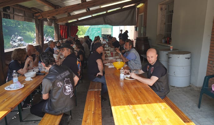 Finiamo il giro nella nostra ClubHouse: all'arrivo la griglia è già a pieno regime, e ci si può sedere a tavola davanti ad un'ottima grigliata, tra risate, chiacchiere e brindisi.
